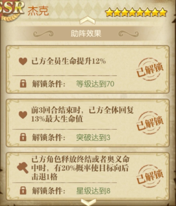 大将战国的助战还不错,如果抽和之国罗的时候抽出来,可以三突用来PVE助战,但不用培养。杰克的话,那就是完全没用了,除了想开图鉴的,其他都不推荐抽取培养。