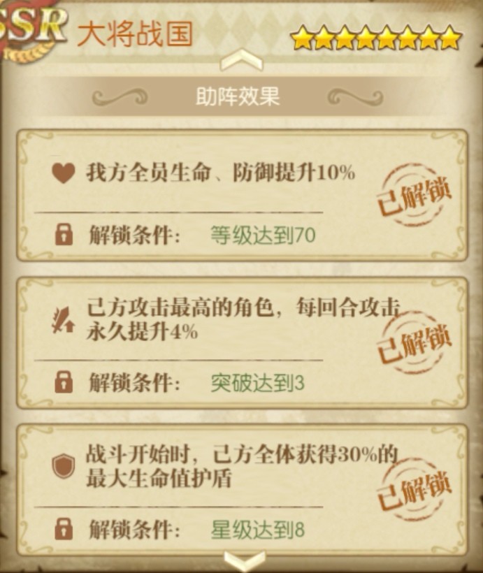 不过战国的助战还是挺不错的,三突助战在悬赏中还是挺好用的,平民玩家可以抽取一个用来助战,但不用培养。