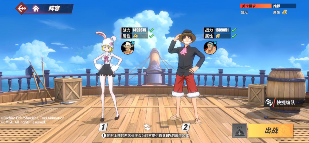 5.四挡·蛇人·路飞推荐副战为加洛特,激斗推荐携带霸王色,友情技推荐战国、甚平、弗兰奇、乌索普(择2即可)