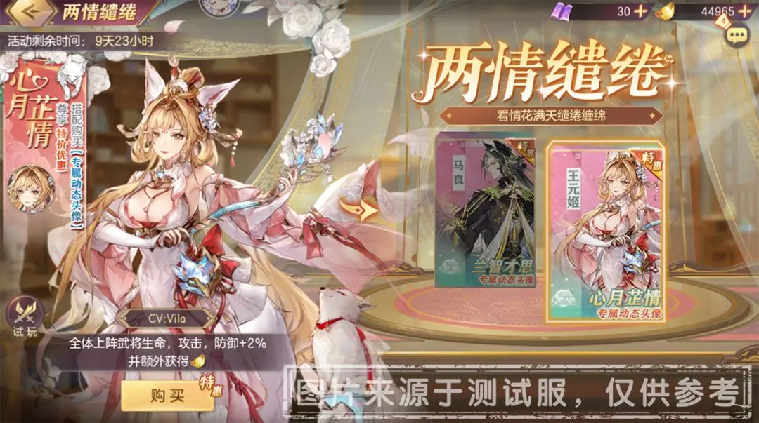 笑魇如花堪缱绻,容颜似水怎缠绵!小将军探索青丘之际,全新王元姬&马良系列皮肤“两情缱绻”亦将限时上架,搭配专属动态头像更能享受特价优惠!