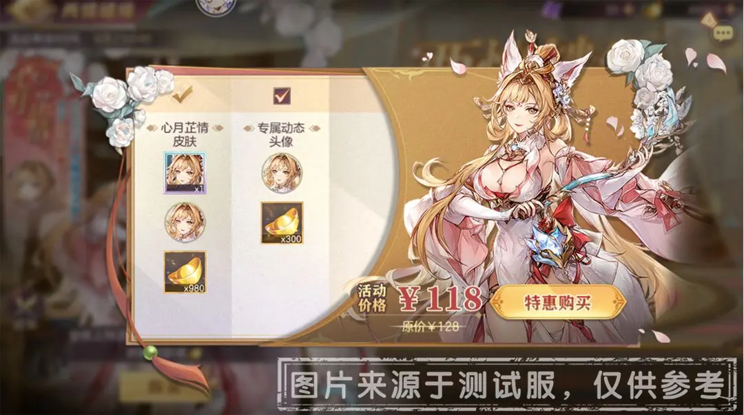 心月芷情·王元姬:售价98元,内含心月芷情·王元姬*1、心月芷情静态头像*1、元宝*980。同时可搭配价值30元的仙缘·心月芷情动态头像打包出售,活动期间尊享特价优惠118元,活动期限购1次。
