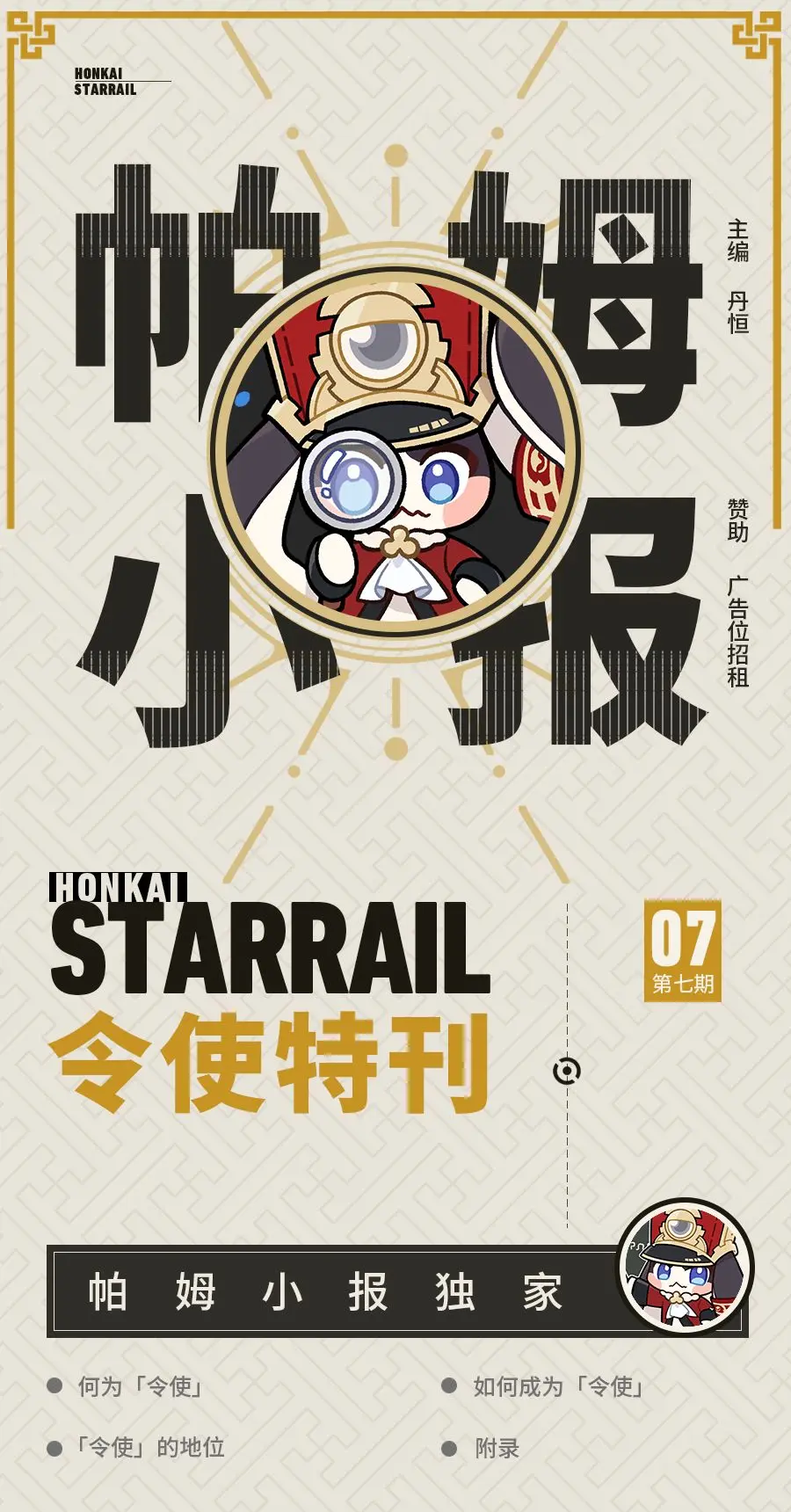 帕姆小报-令使特刊崩坏:星穹铁道 - 新闻星发布于 2024-03-19关注 尽管他们并非完全听令于星神指派,但在世人看来,令使就是星神意志的代言使徒。在各自的命途上,令使走出的距离远比普通行者更甚,而他们自身的存在,也将在这一过程中成为命途存续、延伸、拓宽的动力。寰宇间有关「令使」的传言众说纷纭,好在丹恒已整理出部分智库资料,作为开拓者了解「令使」的参考……