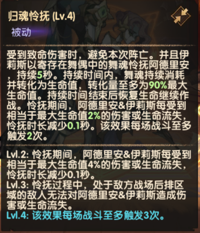舞者的核心生存技能,受到致命伤害时,避免本次阵亡。并且进入怜抚状态,持续数秒,持续时间结束后恢复生命继续作战。