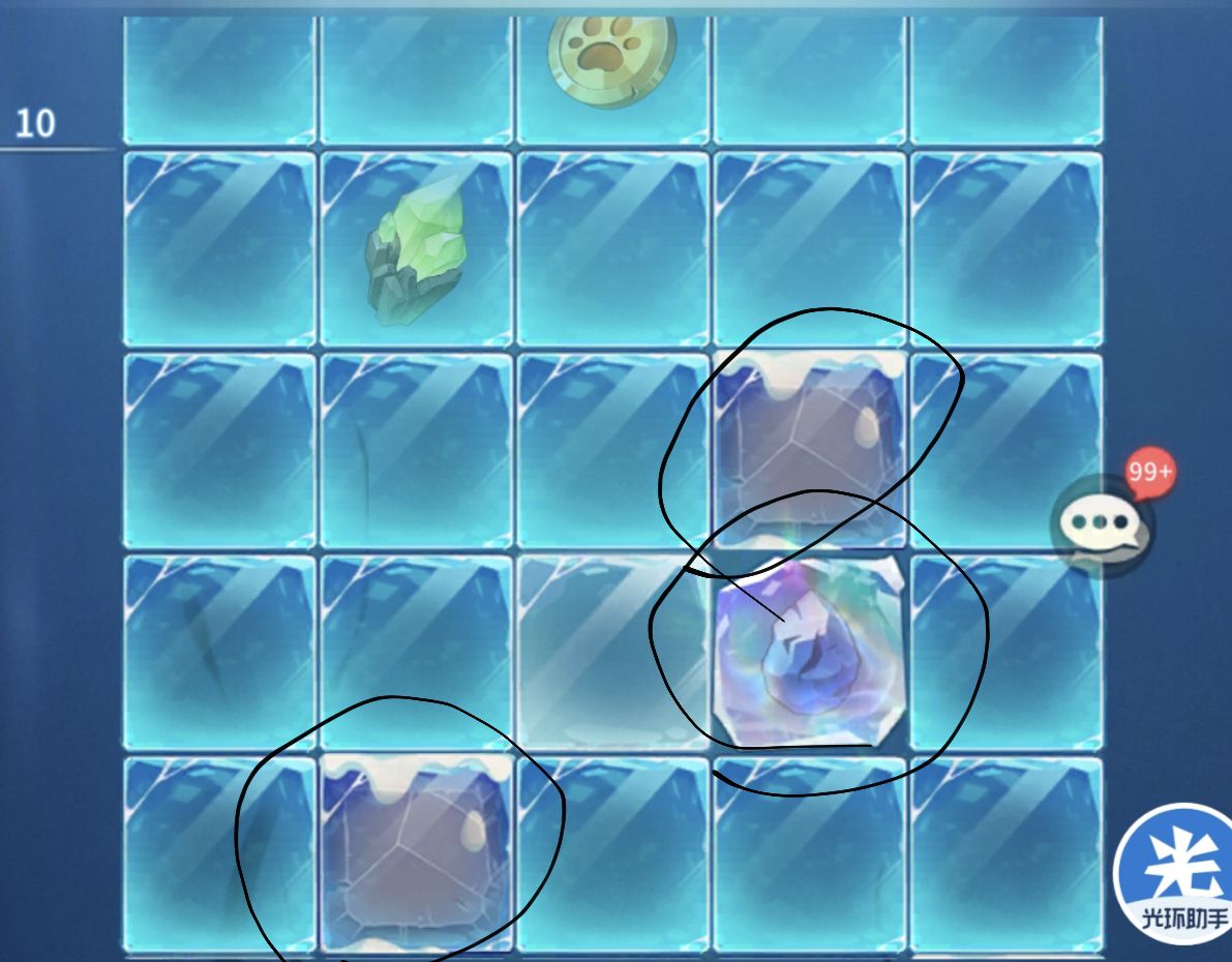 比如下面的图片中,狮子圈出来的冰块就是硬度高的冰块,分别是第2列和第4列的冰块是最硬的。