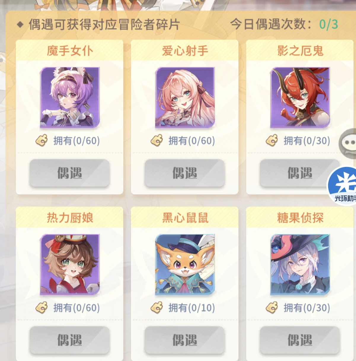 二:【偶遇】兑换推荐。偶遇可以获得我们全部角色的碎片,相当于在这个商店是可以白嫖碎片的。但是每天只有3次白嫖的机会哦。