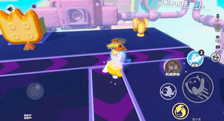 抓着蛋回流水线,还抓着蛋缓慢越过障碍