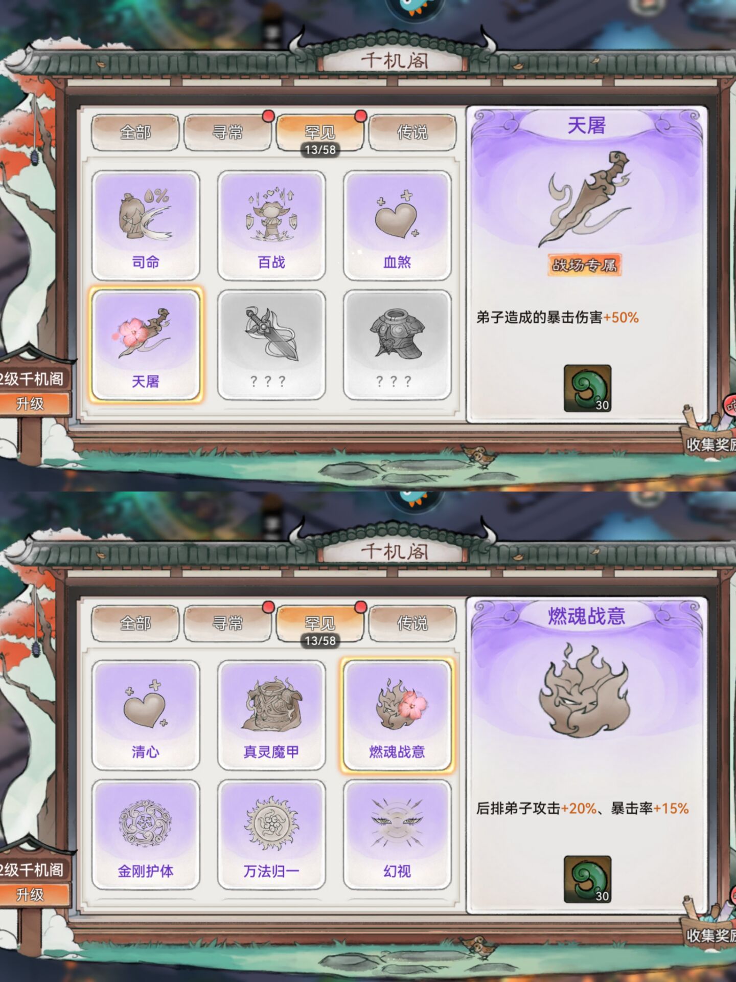 清心可以提升受疗效果。回梦提升每次战斗结束都可以恢复弟子的生命,确保弟子在下场战斗不容易阵亡。