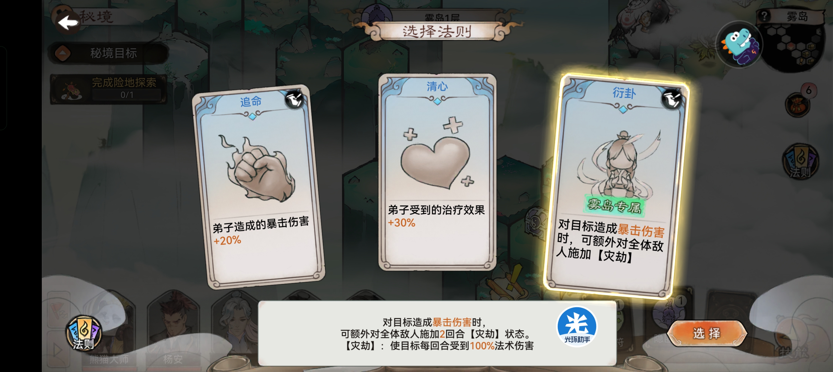 法则就是增强我们弟子战斗实力的一种加成,正确选择法则可以更高效更稳的帮助我们通关上古险地。