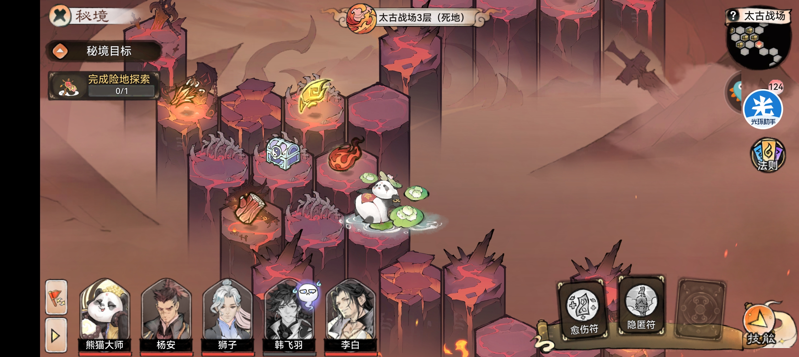上古险地基本的玩法和我们的普通秘境差不多,也是通过走格子来探索的。这个大家知道就行。