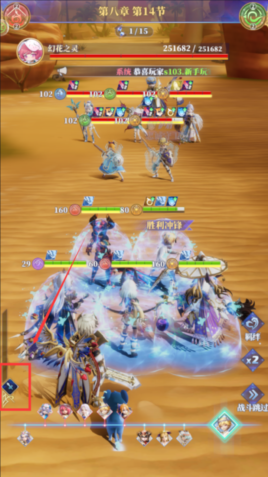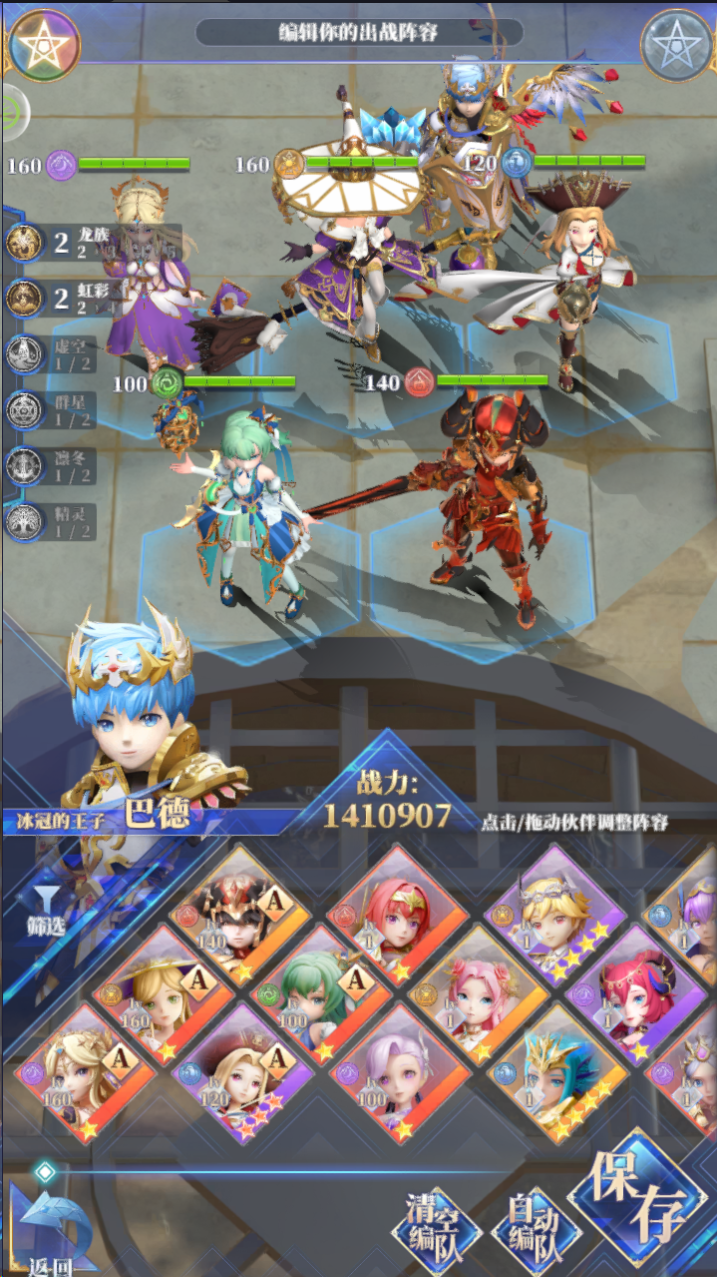 1.初始阵型为前二后三,建议前排部署血量以及防御更高的伙伴吸收伤害,给后排提供输出环境。