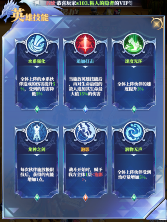 3.英雄阵型能为不同站位的伙伴提供基础属性。