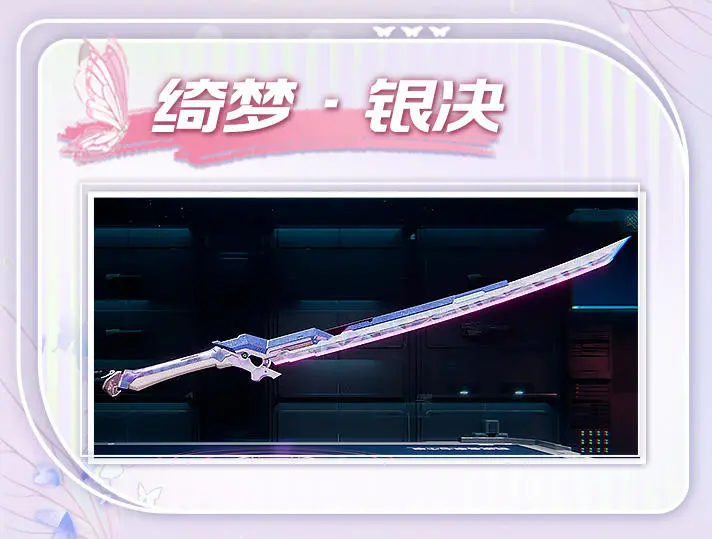 千鸟·阿修罗新武器皮肤「绮梦·银决」通身色彩光怪陆离,刀刃如钻石火彩般五光十色,一刀挽出绮丽的梦。
