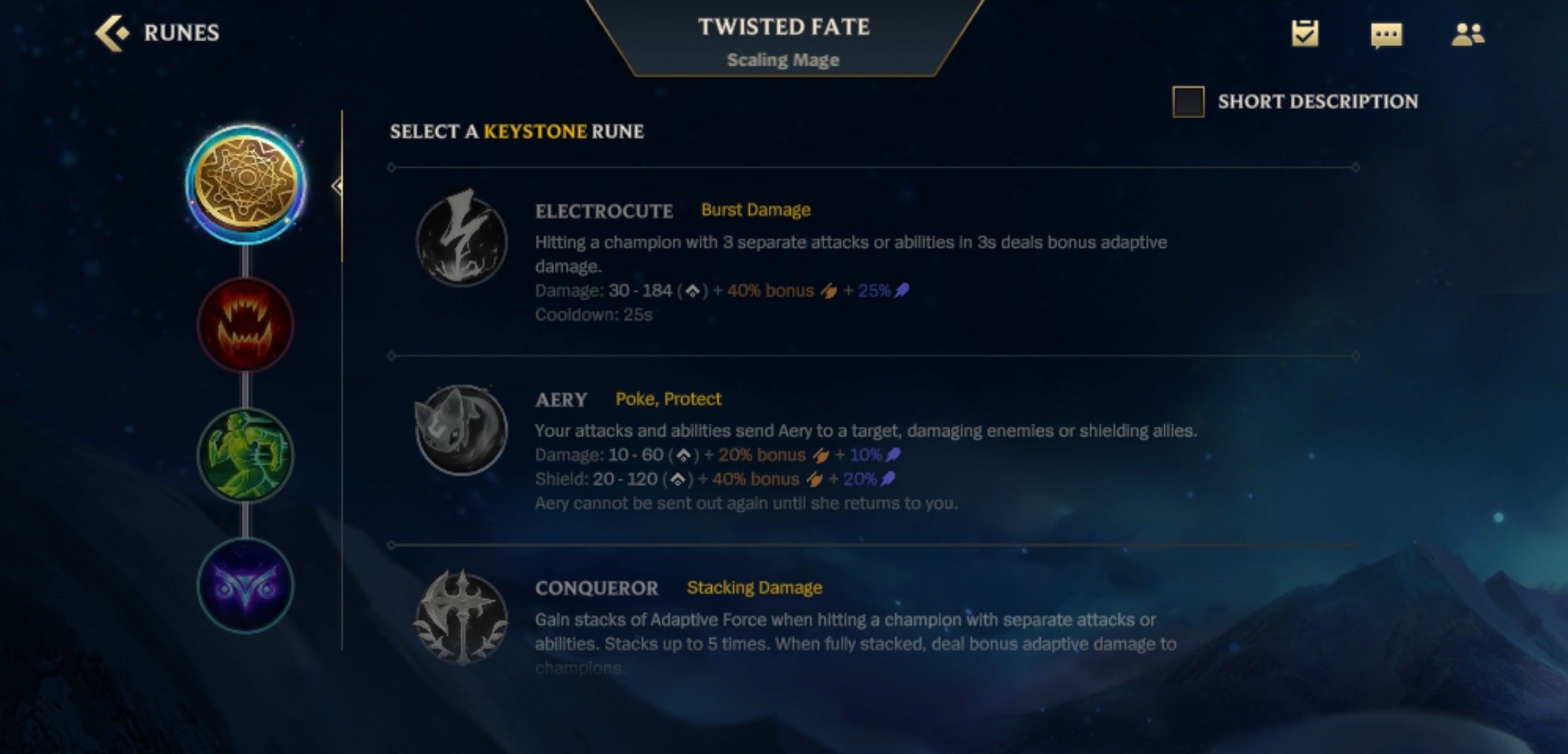 中单主流的主系符文是征服者、电刑、迅捷步伐、艾黎还有行窃预兆。前三个偏主C打伤害,适合亚索、阿卡丽、劫、阿狸这类型的输出型中单,根据自身的特性选择合适的主系;艾黎和行窃预兆偏打消耗和功能性,非常适合奥利安娜、萨勒芬妮、卡牌这类型的英雄。副系在这里就不过多介绍了,后面国服上线再详细讲。
