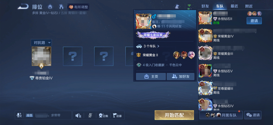 点击好友与车队队友头像可展示玩家所在车队,点击可查看并申请加入