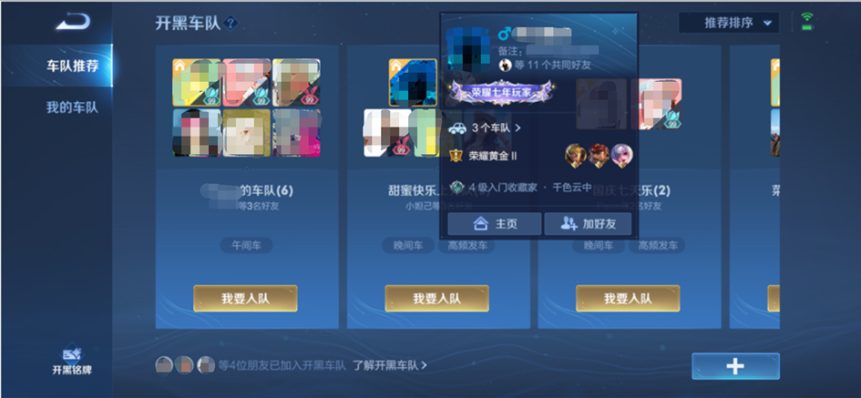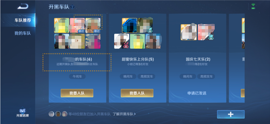最近一起开黑组队的队友所在车队将出现在车队推荐界面,玩家可点击申请入队