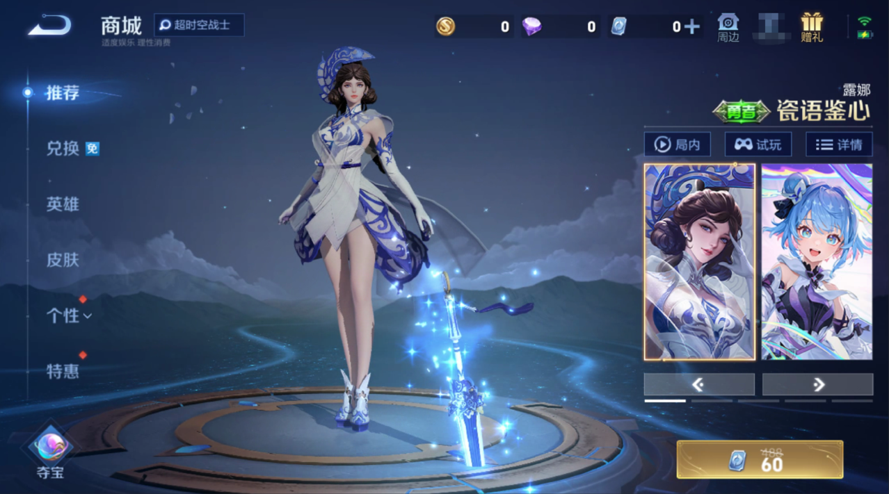 4、S35返场皮肤礼包,售价60点券,打开后可获得张良的限定返场皮肤“幽兰居士”,该皮肤是最后一次直售返场,持续一个赛季。如果已拥有该皮肤情况下购买礼包,打开礼包后重复皮肤会转化为皮肤碎片。
