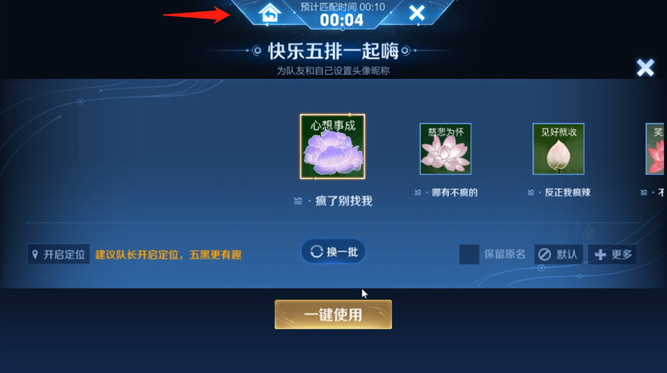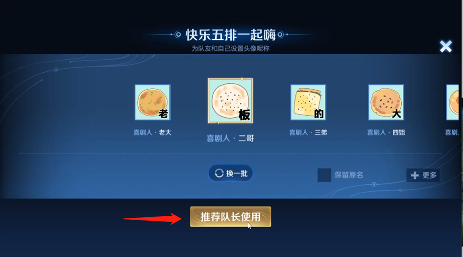 队长未设置五排头像时,队员也可选择一套头像和昵称推荐队长使用: