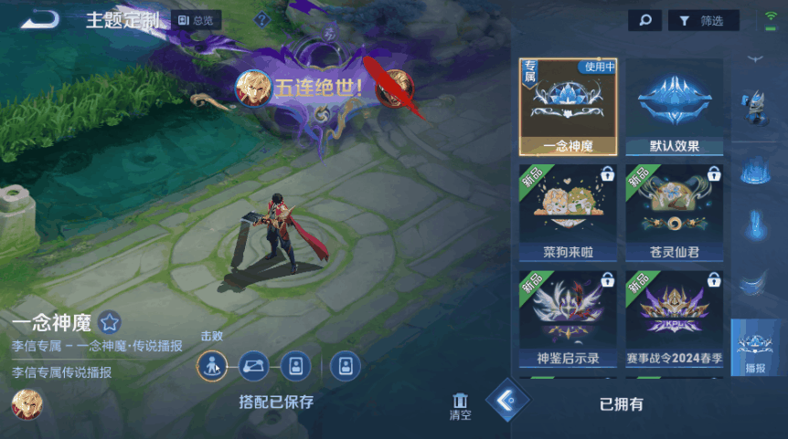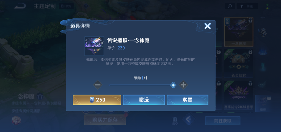 本次更新,我们首发的播报为李信-一念神魔 传说播报。