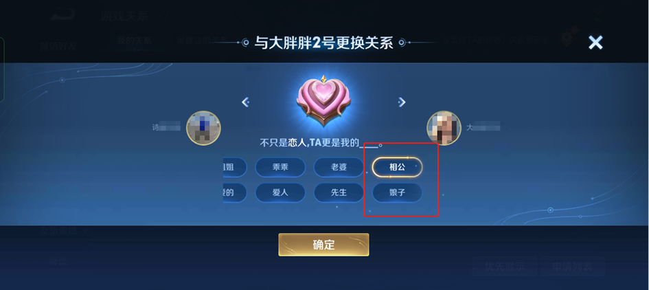 恋人关系新增【相公】【娘子】称呼,可随时更换