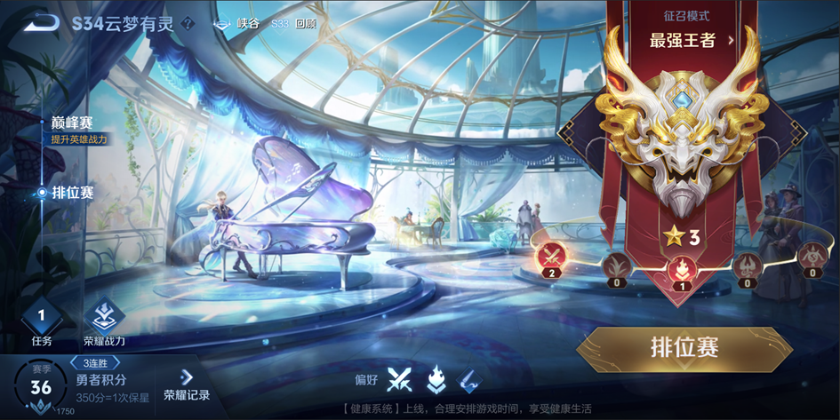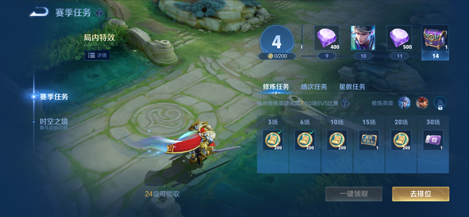 2、赛季任务由赛季等级以及三大任务组成(修炼任务、分路场次任务及分路星数任务)