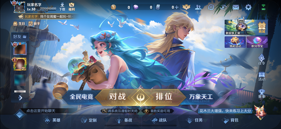 我们将在版本更新后上线新版首充、续充活动。所有用户都可在更新后在游戏内完成充值参与活动,领取自选英雄、英雄/皮肤畅玩卡、积分夺宝券等豪礼。已参与旧版首充、续充活动的用户,仍然可以在新版首充、续充活动上线时通过充值重新参与新版首充、续充活动。