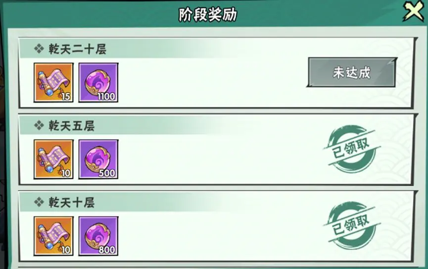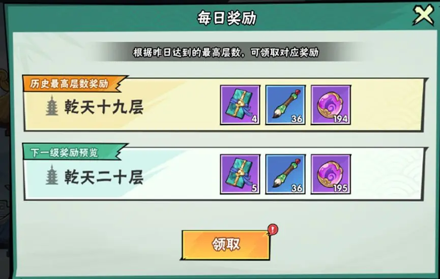 爬塔中奖励主要分为通关的每层奖励、根据历史记录最高层颁发的每日奖励、与到达一定阶段给的阶段奖励。少侠每日有五次挑战机会,可以反复刷取通关奖励噢!