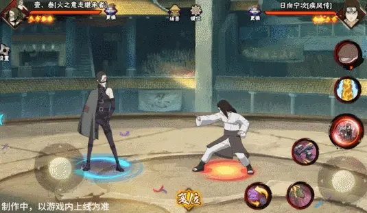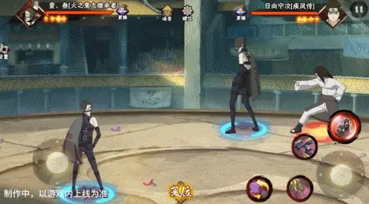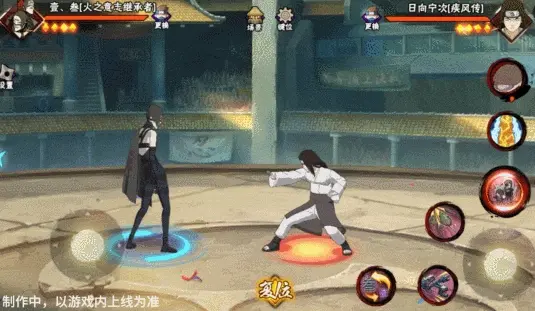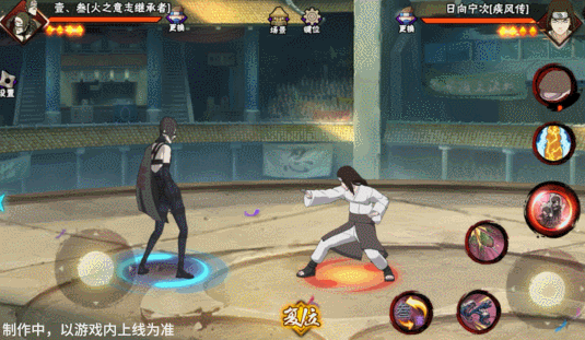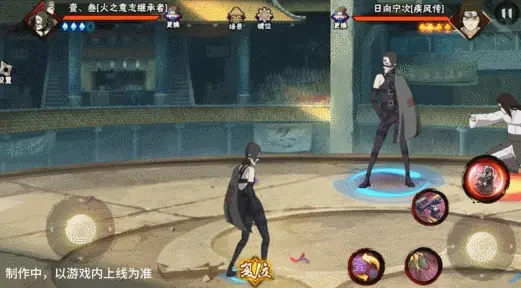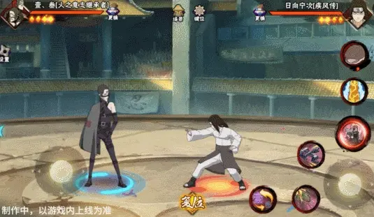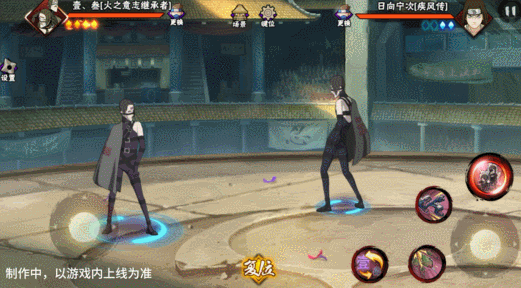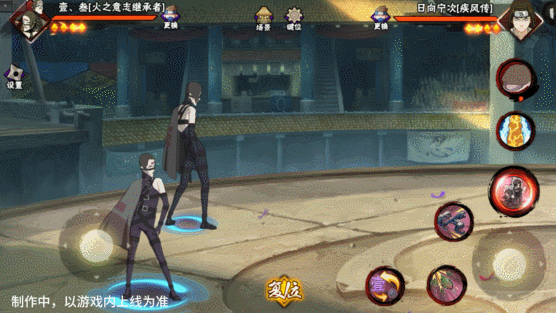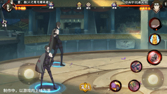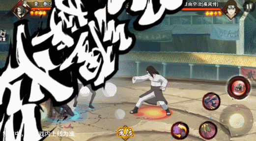 壹和叁会同时登场并共享血量,其操作按钮与常规忍者不同,壹·叁拥有左右两个摇杆,左摇杆控制主控角色移动,原普攻位置的右摇杆用于控制副控角色移动。出场默认壹为主控角色,脚下为大圈,视野会跟随其移动。副控角色脚下为小圈,当副控角色在镜头外边时,会有蓝色的箭头替身其位置。