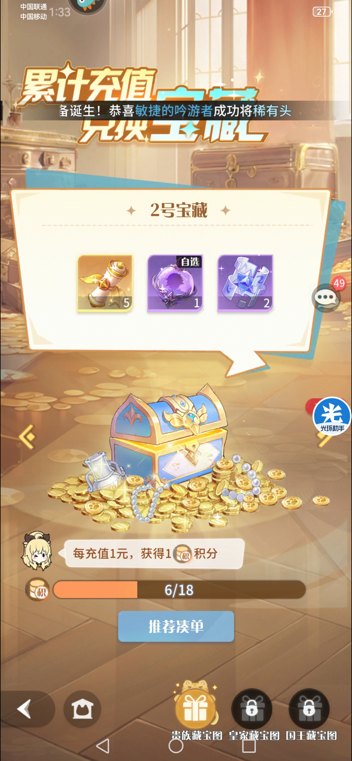 ③公主宝藏里面的累计充值,大家也可以搞一下奖励十分不错。