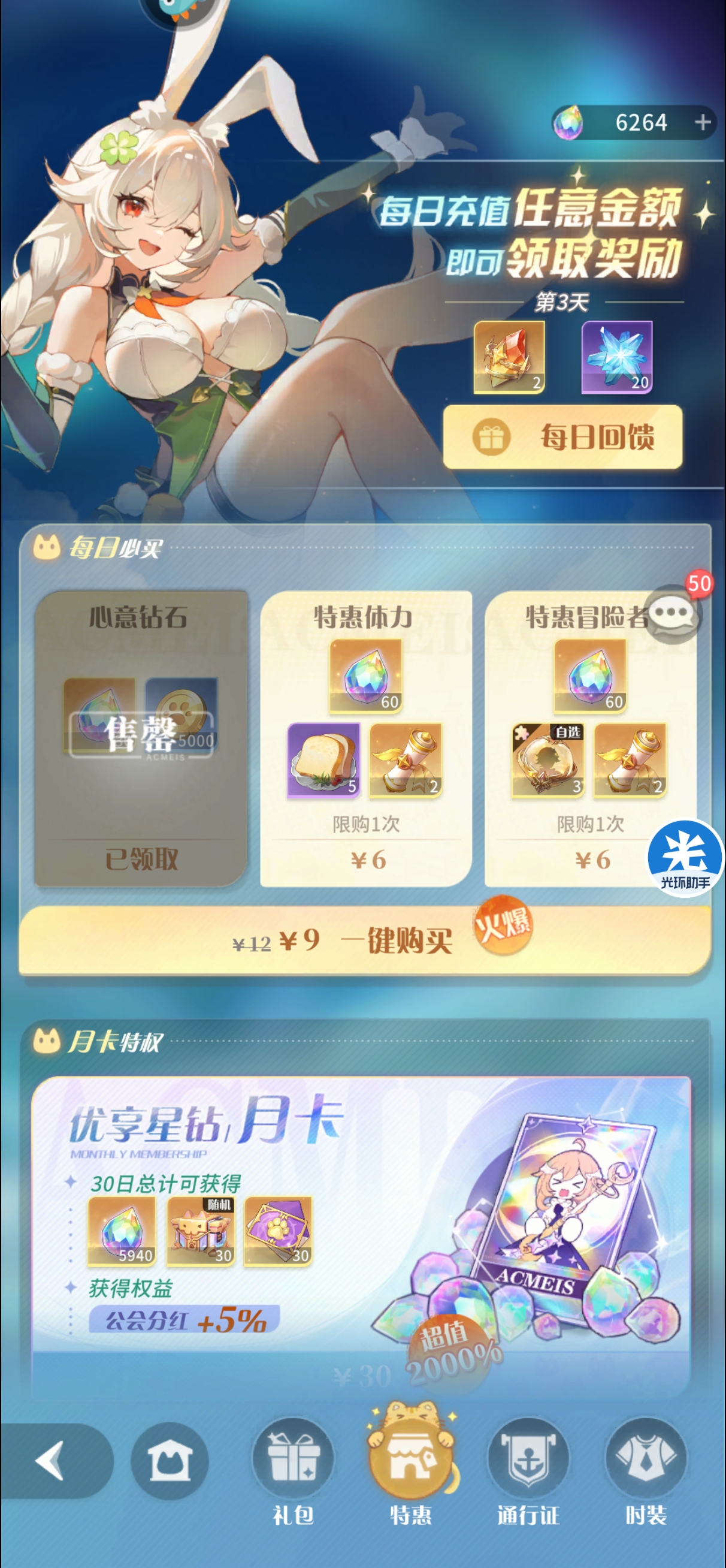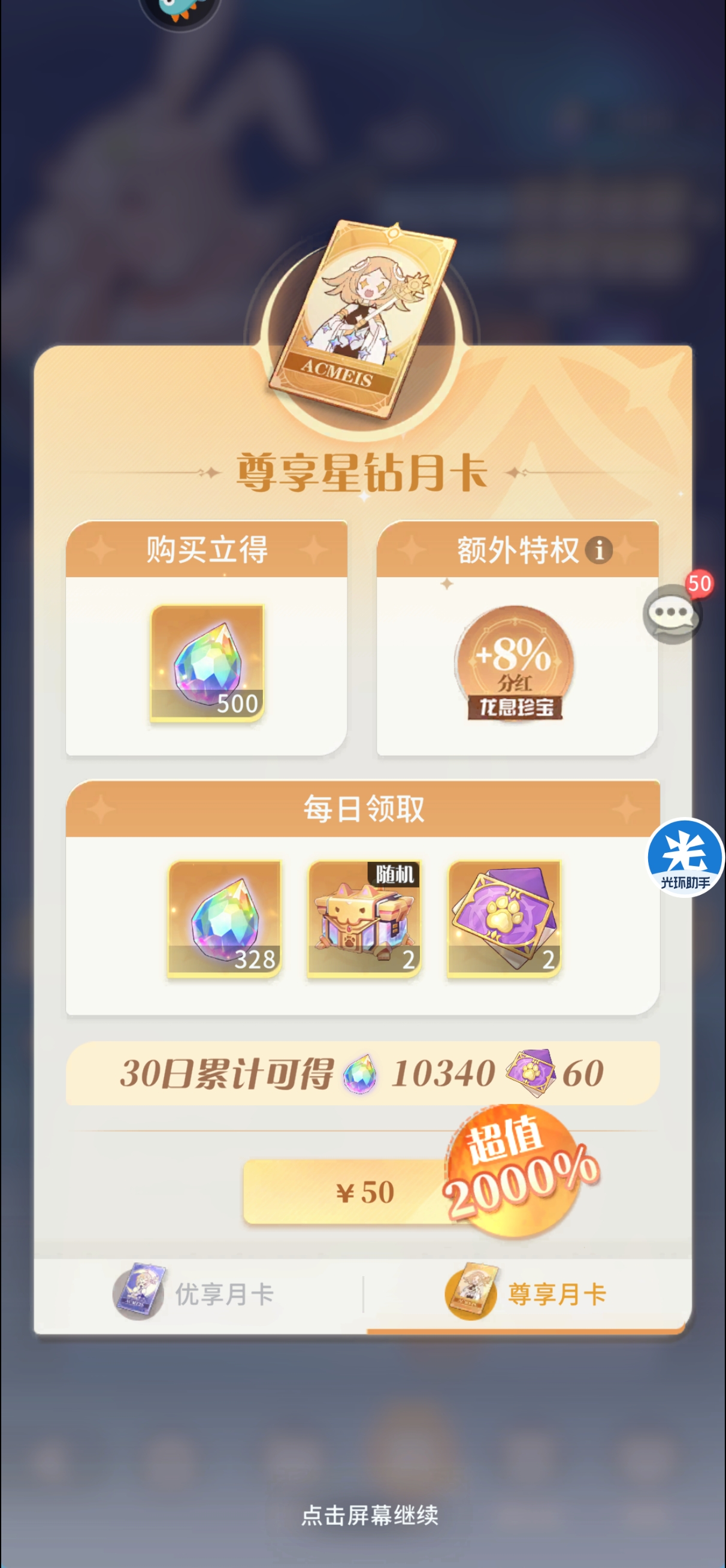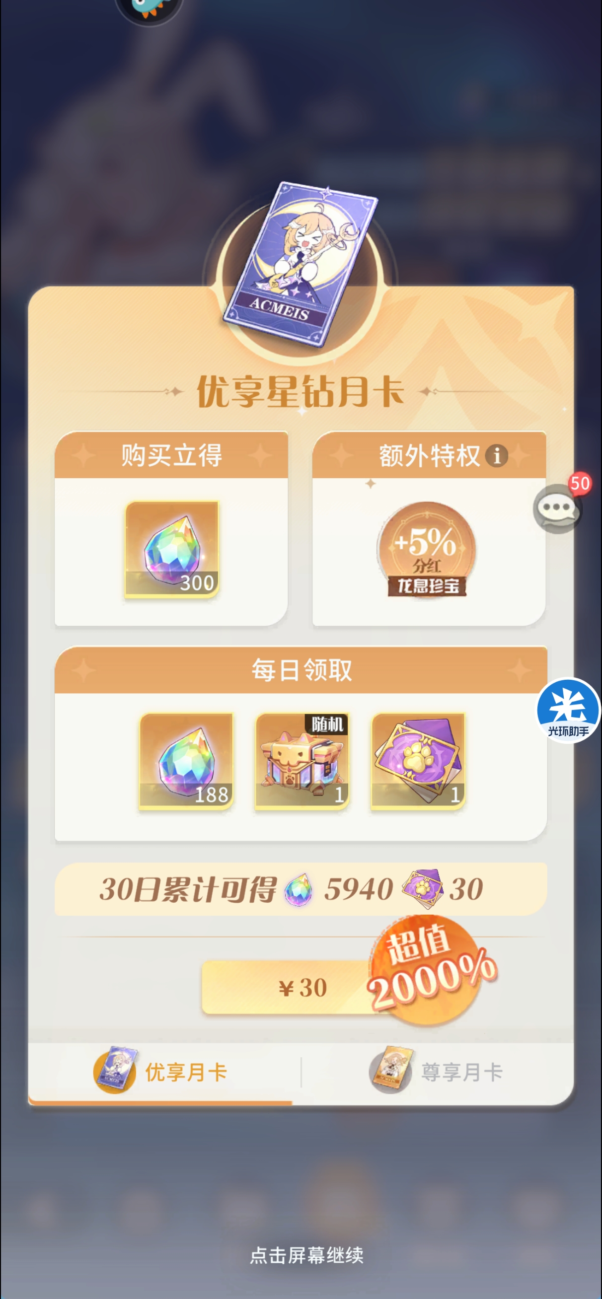 ⑨一张30的月卡,还有一张50的月卡,也可以看自身条件购买送的星钻也比较不少。