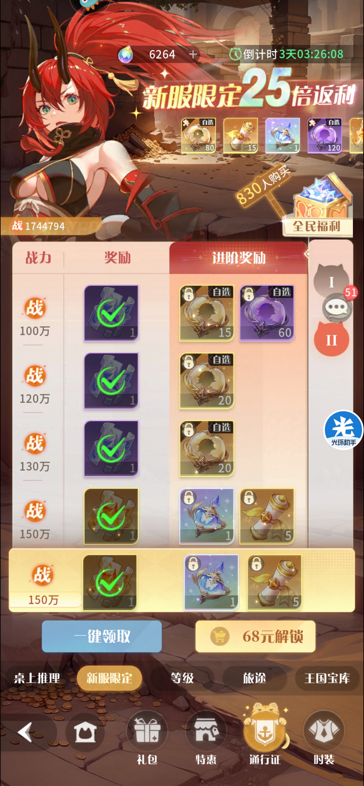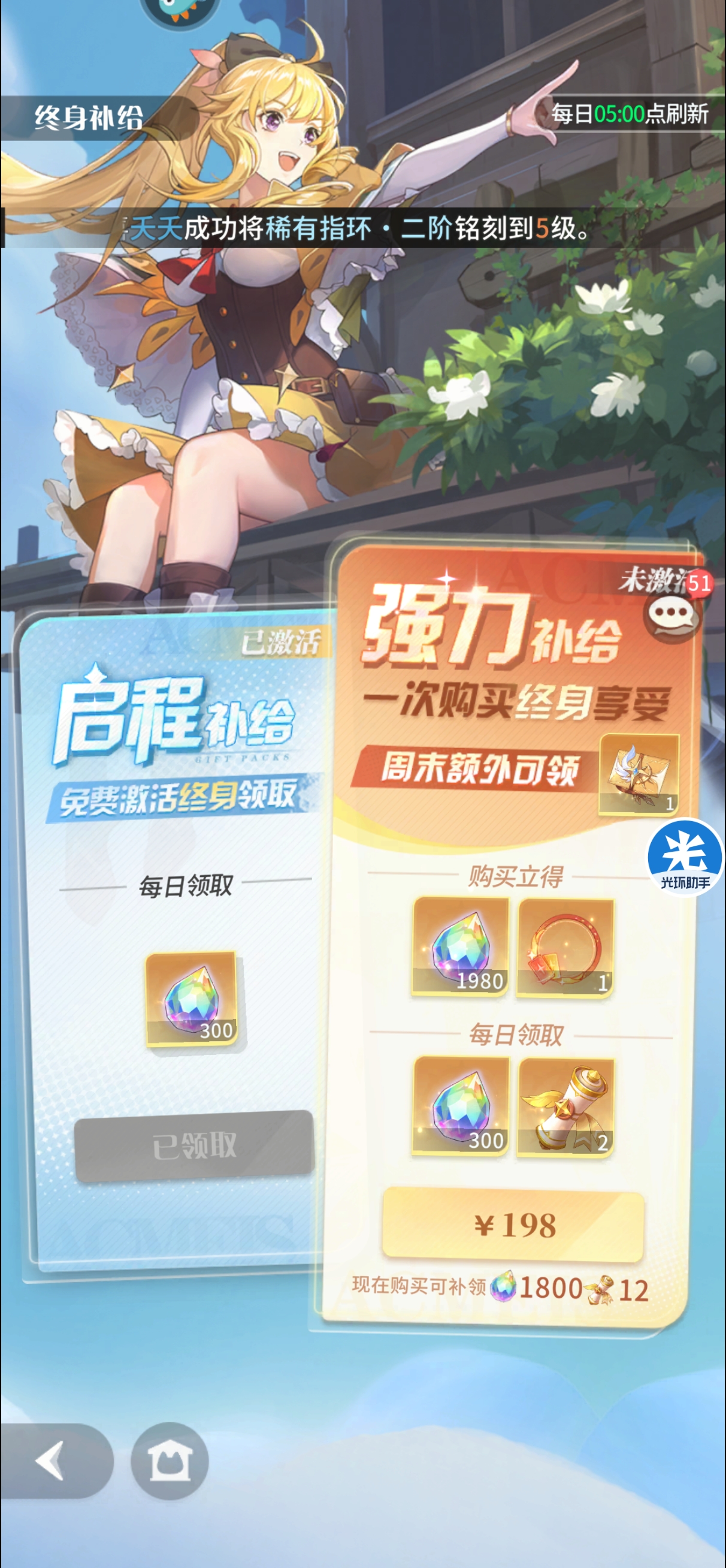 ④那个198的终身补给大家有条件的话也可以买一下,适合长期的充值玩家。