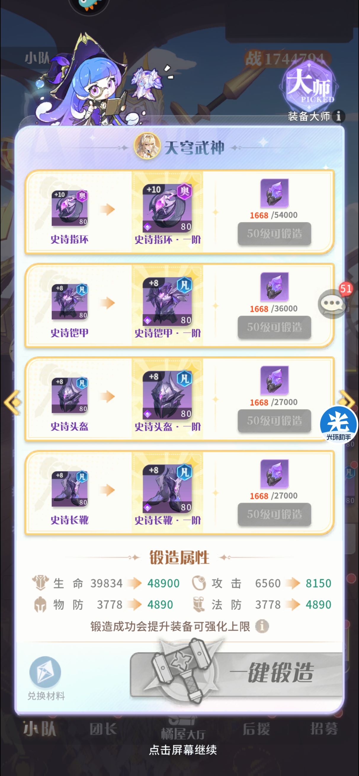 45级会开启装备锻造,我们可以把武器锻造至紫色。