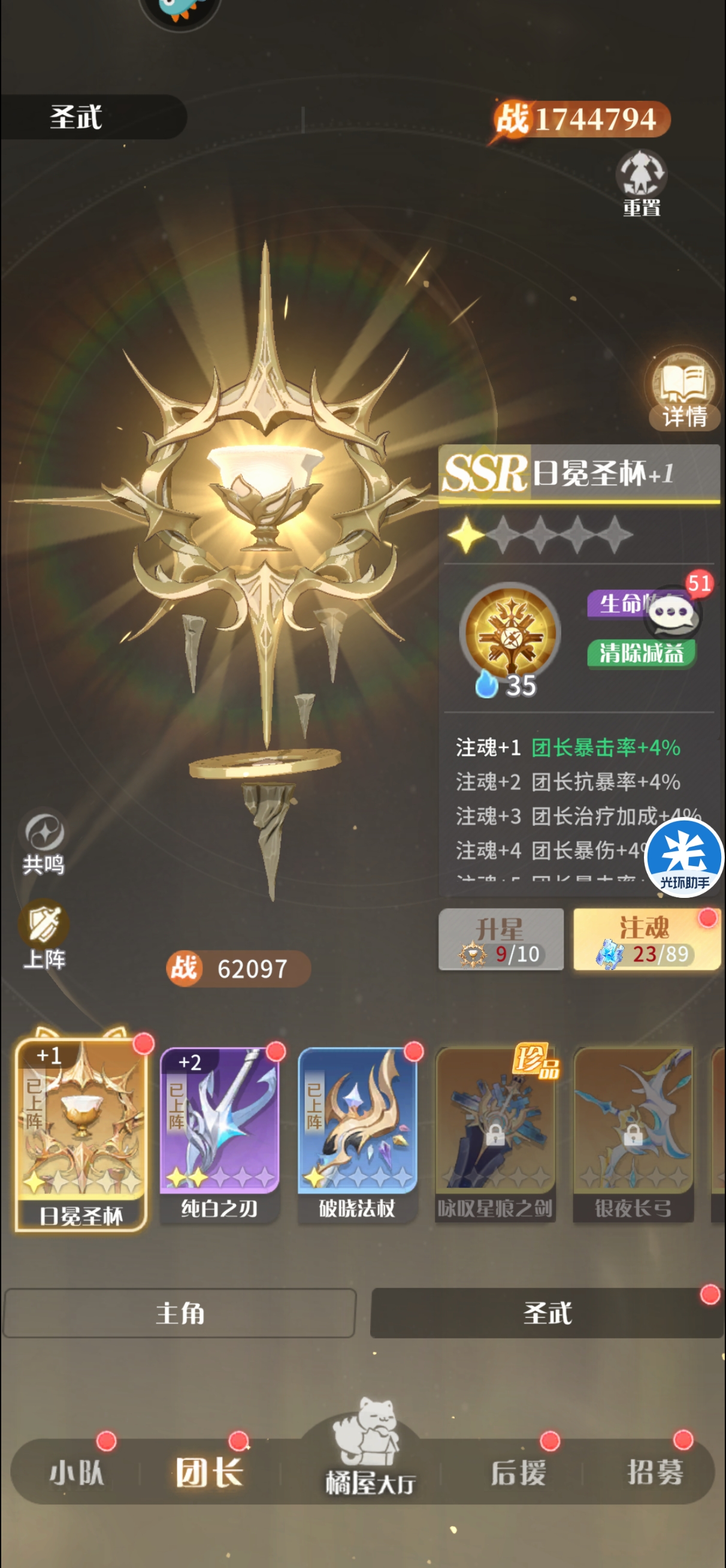 果然还是充值的武器最强,但是日冕圣杯的强度也是有目共睹的,他不是攻击强,他可以让阵容续航还能增加抗伤,属于每个阵容都必带的圣物。