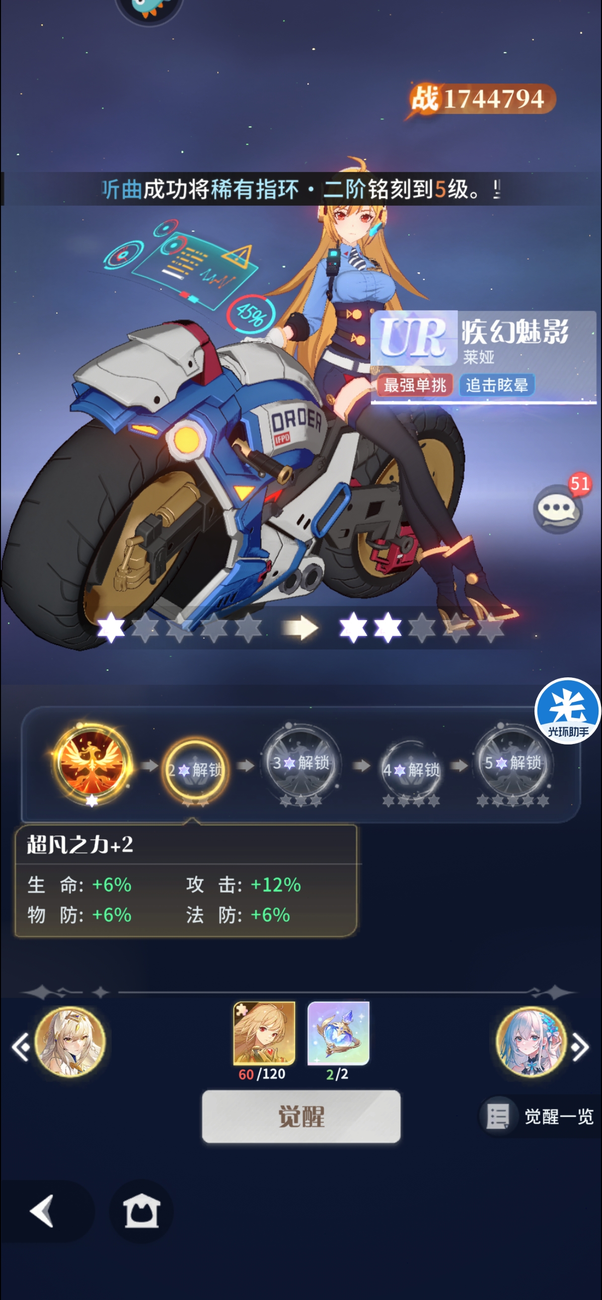 莱亚升到五星之后想要觉醒就需要达到训练5级力量认证一次,并且还包括两个超凡冒险之星和120碎片才能继续觉醒。
