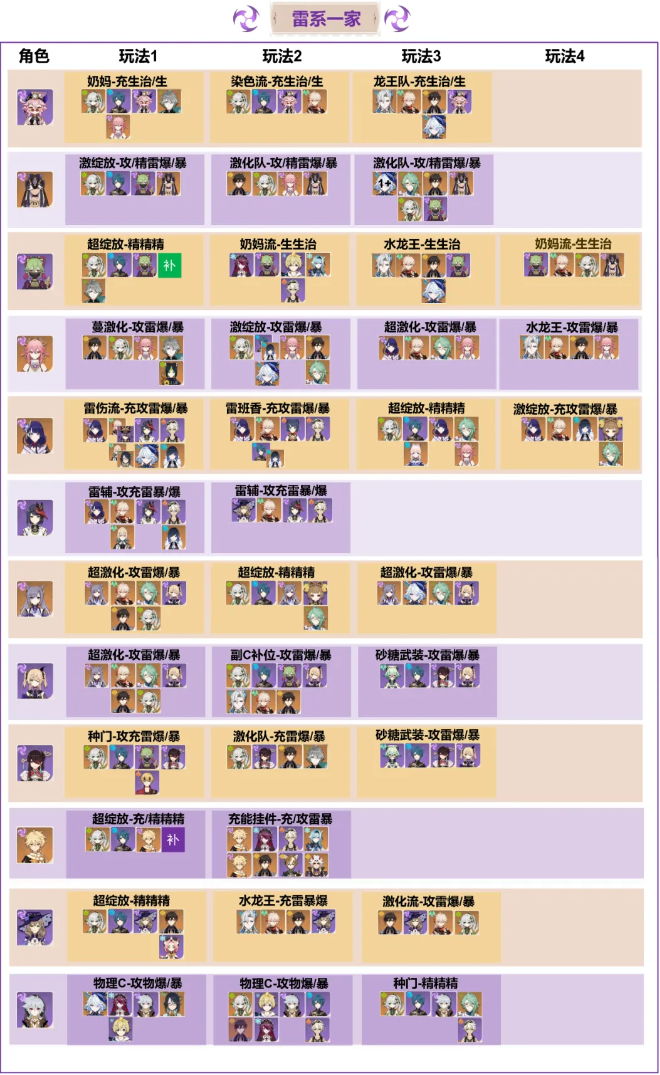 一、雷系配队根据伤害、分为四大类型: