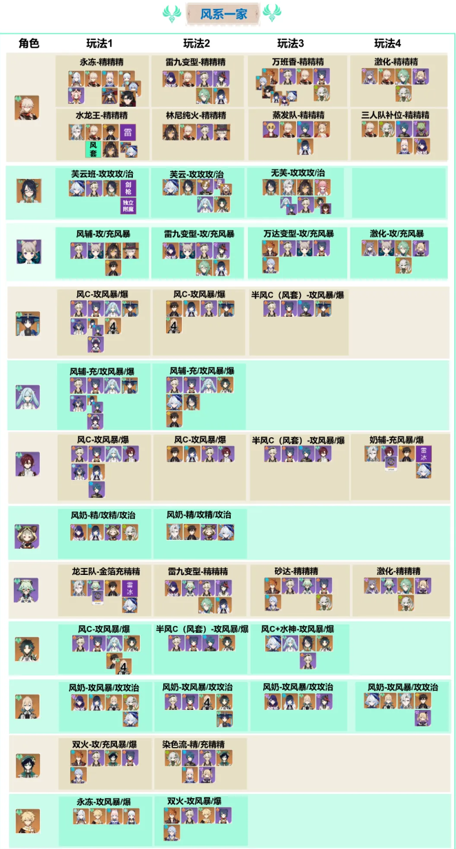 所有风系:带风套都可看做风系辅助,下位替代万叶;