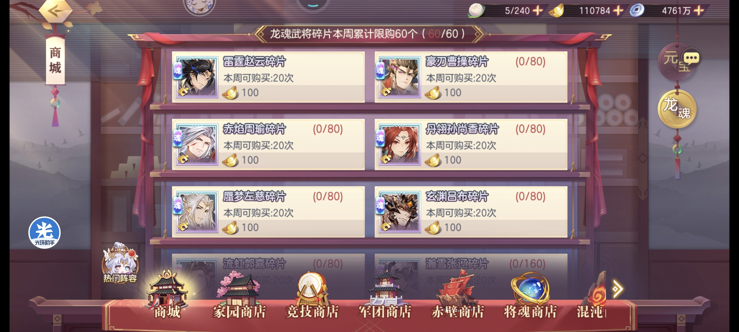 每一周的龙魂武将碎片是重中之重,必须拉满!!!