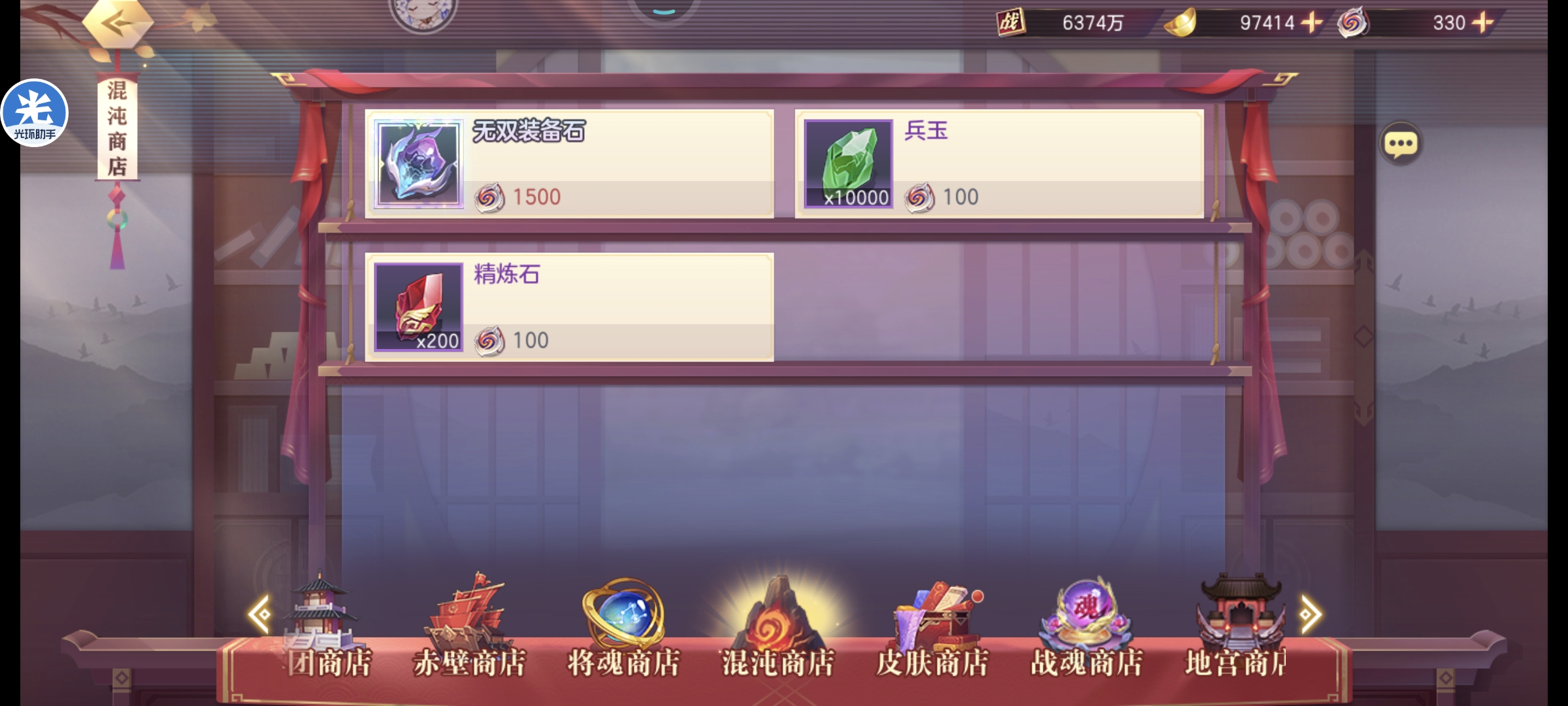 混沌商店全买无双装备石就行
