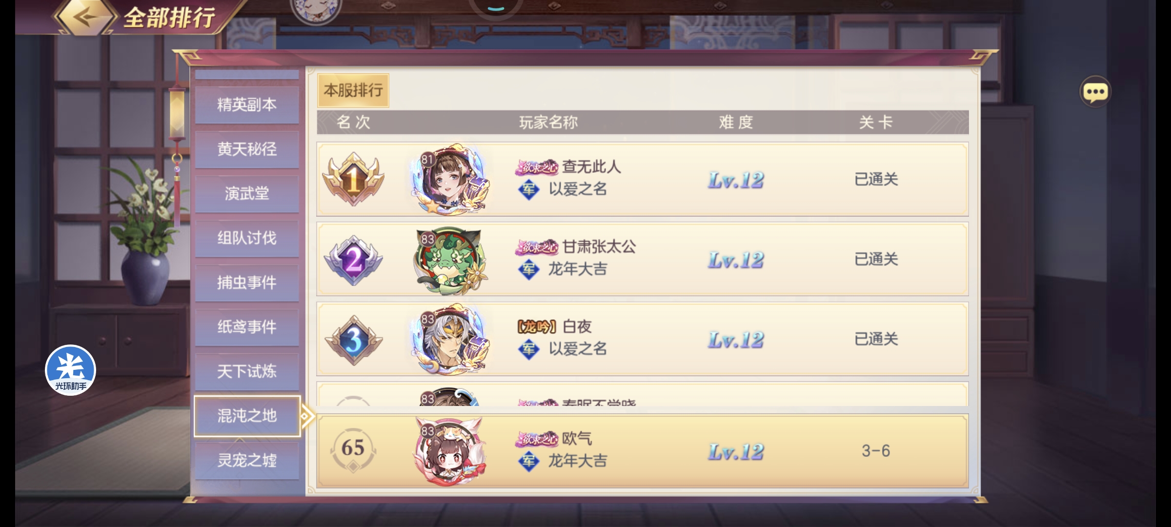 混沌之地每次打到下一层的3-6就可以啦,不要通关会少很多奖励
