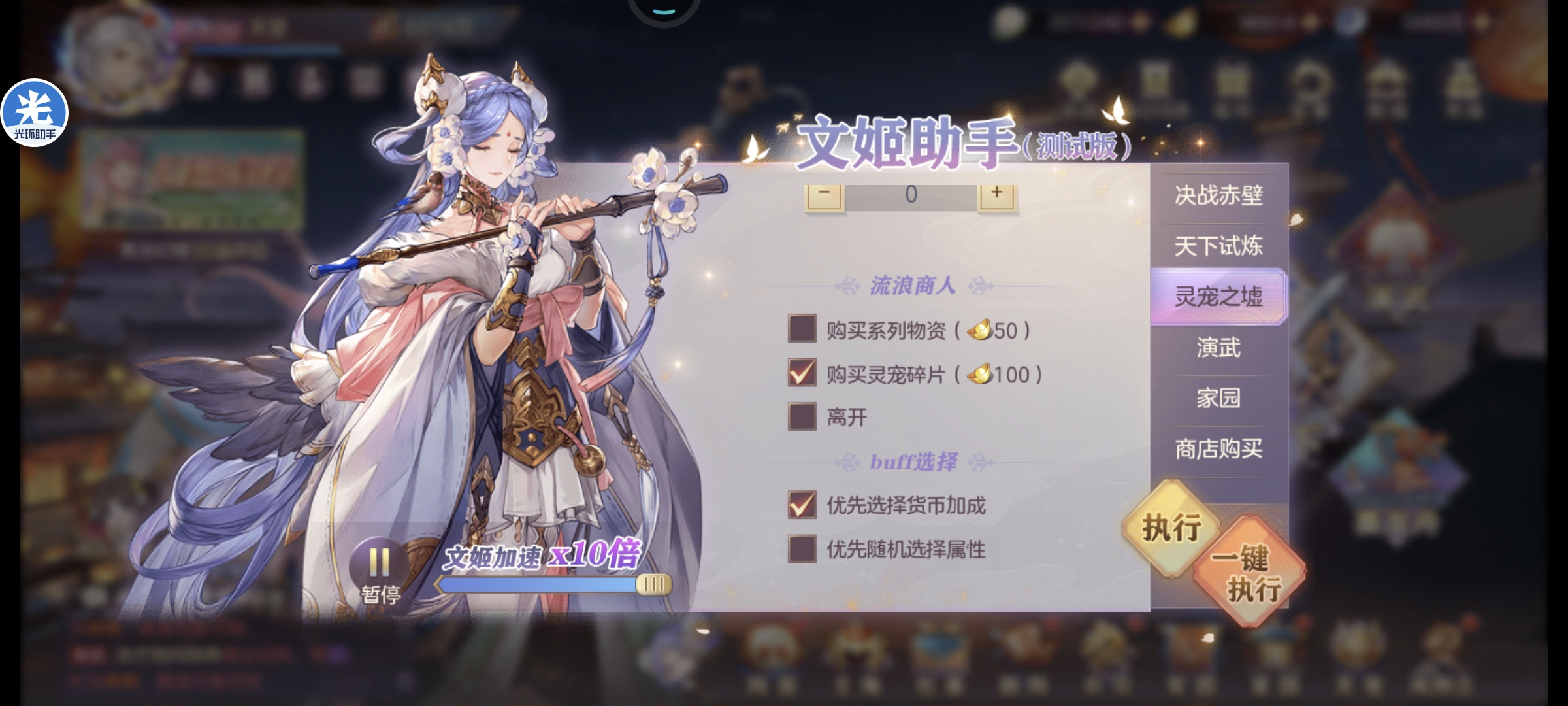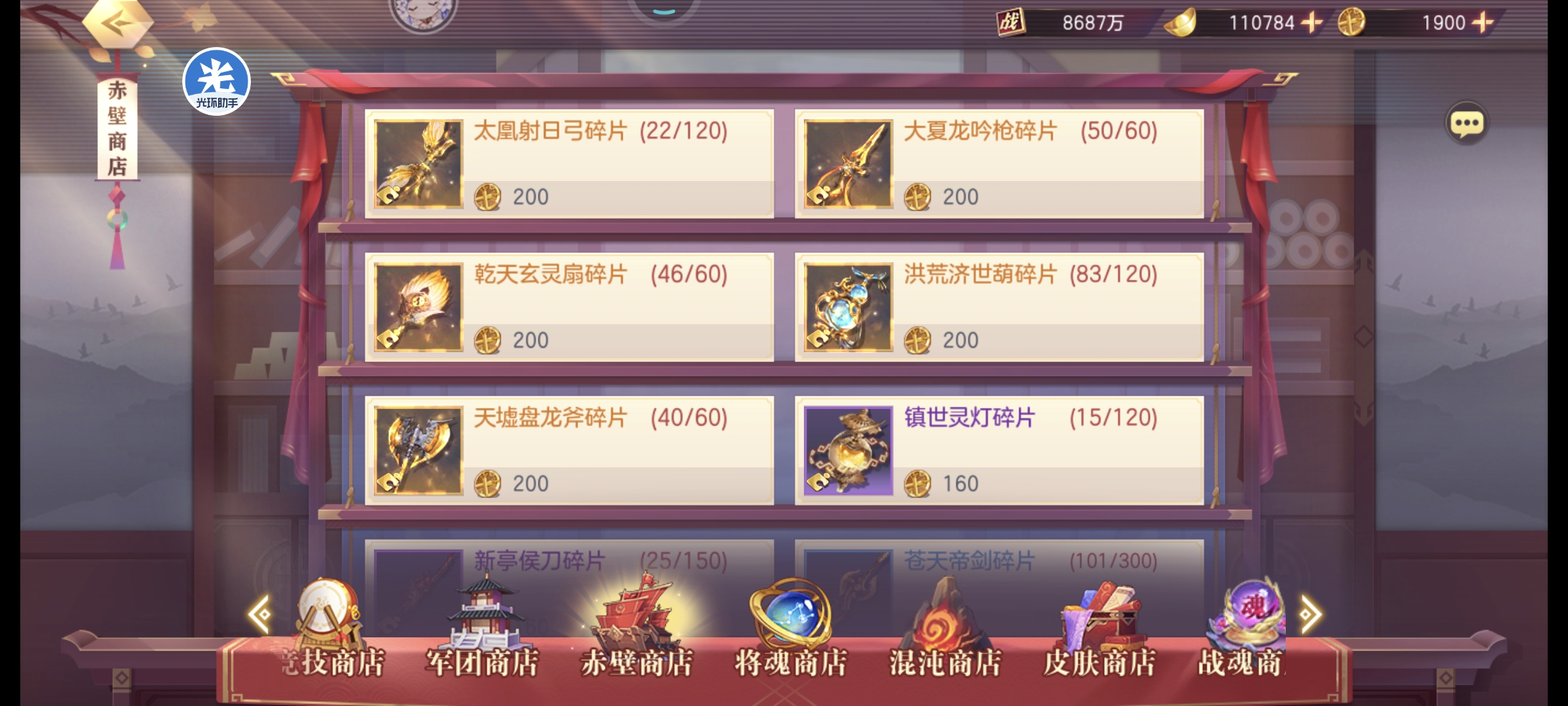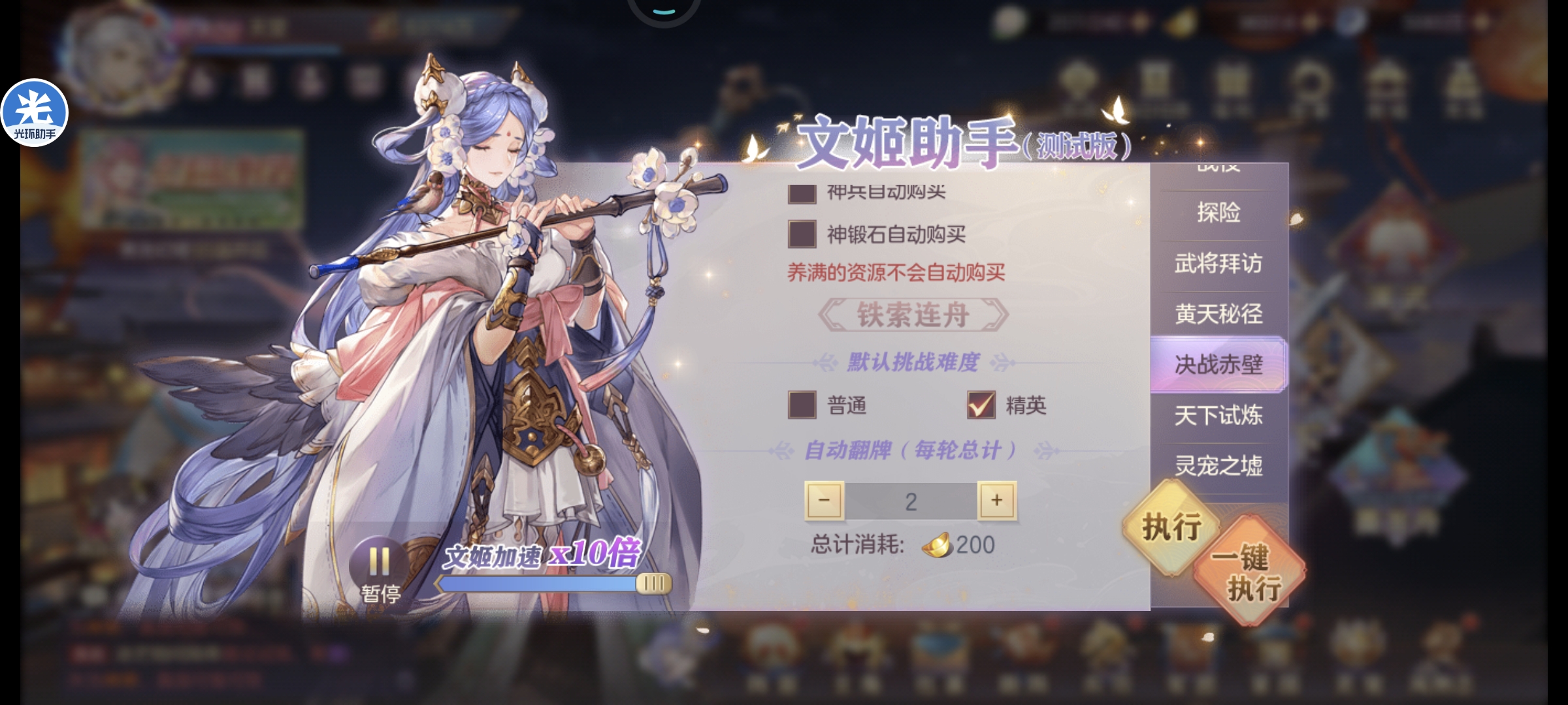 赤壁每日手动购买橙色神兵,蔡文姬助手会帮你连紫色一起买了