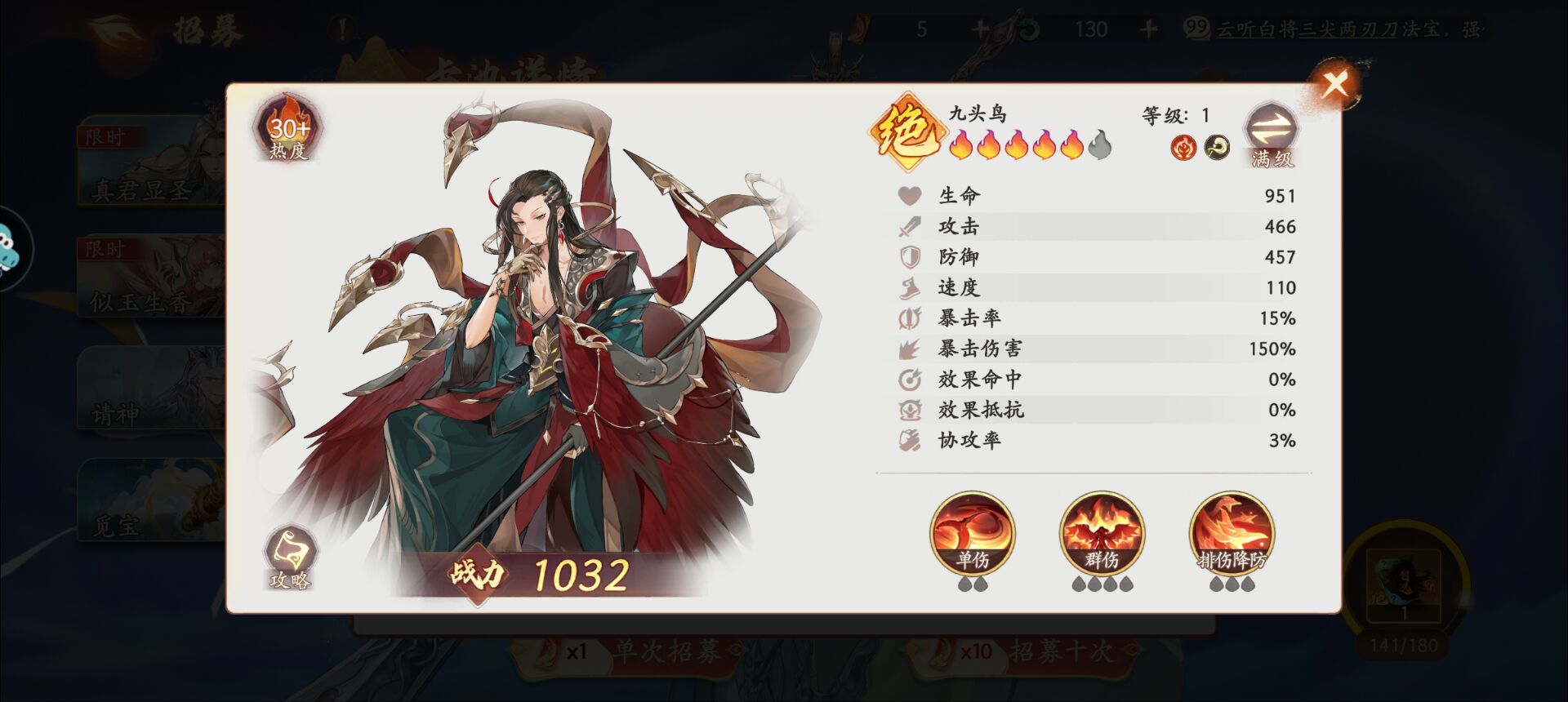 配合银角、蜘蛛精的负面,九头鸟减益伤害拉满。