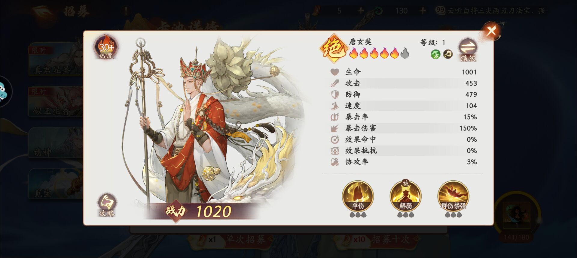 强度目录:T1:银角大王 蜘蛛精 九头鸟 唐玄奘