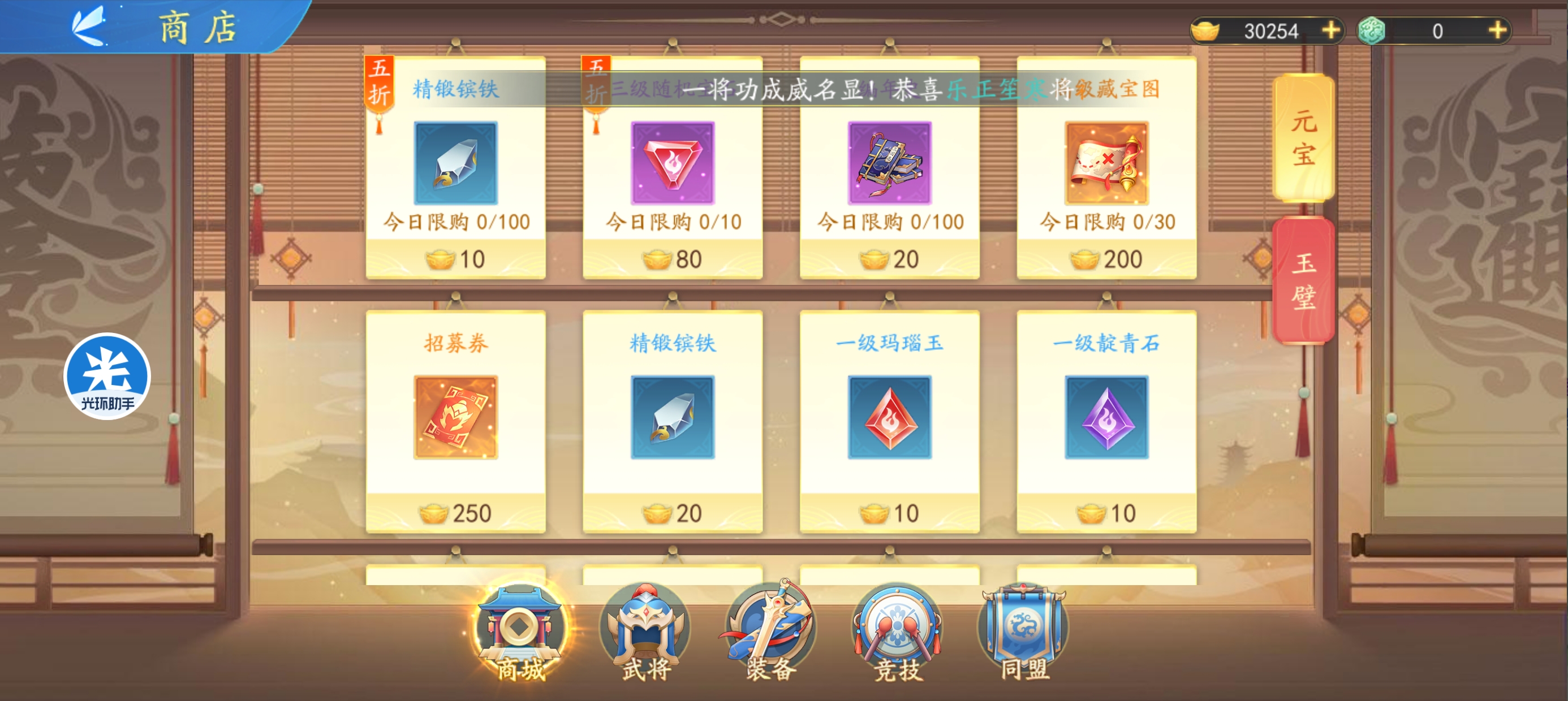 第一个是我们的商城,商城这里的话基本上不需要花元宝购买炼金石和招募卷以及青石玉石等。
