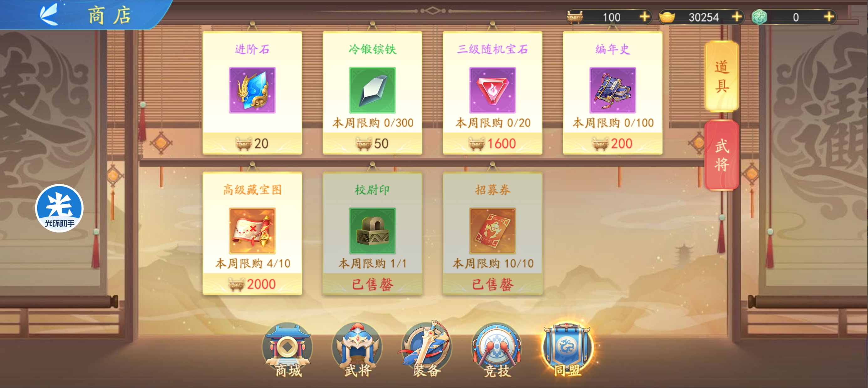 同盟商店可以购买高级宝藏图,其他的物资暂时不考虑。