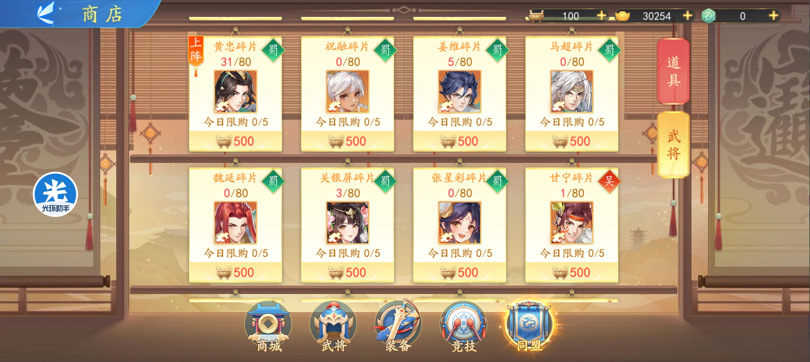 同盟商店大部分会出现自己想要的橙卡。一般这里有黄忠碎片,但是我不推荐这里购买黄忠碎片,因为目前黄忠已经两颗星了,他的升星练度可以暂时缓一缓。优先拉孙尚香以和曹冲这两张卡达到二星。