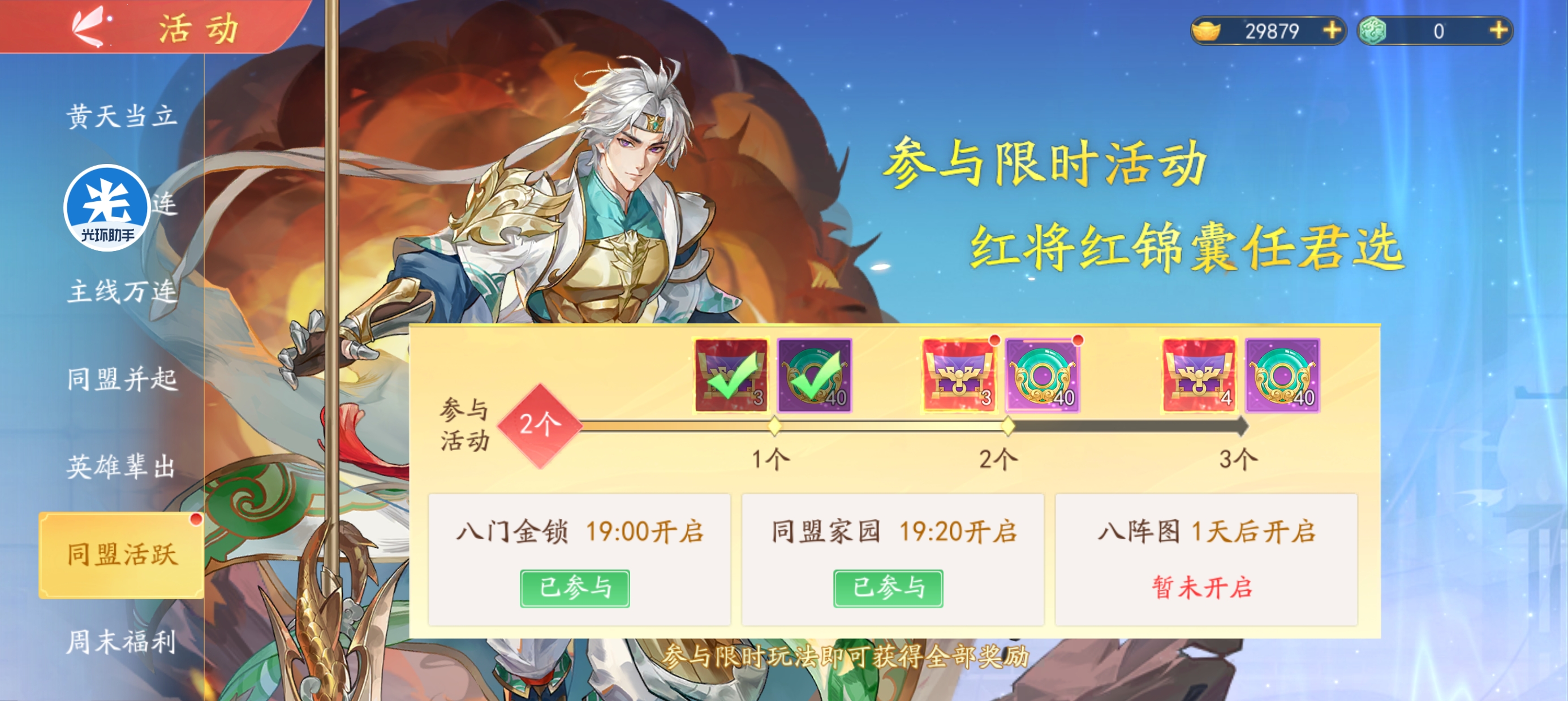 只要参与参与了。三次红将锦囊可以任选。因此一定要参加活动,增加自己的活跃度。红色箱子就可以选择郭家碎片。