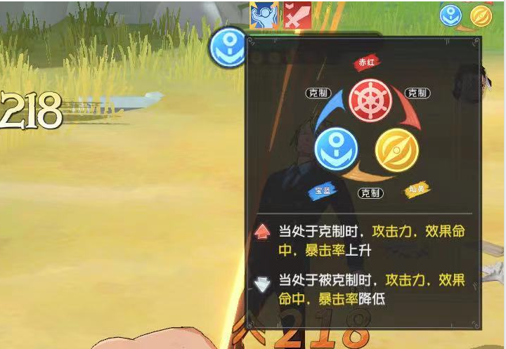 在对战过程中,人物阵容设置最多上场6人,前排3人后排3人后补位,并人物阵容设置属性相克,赤红克灿黄克宝蓝的三角循环关系。