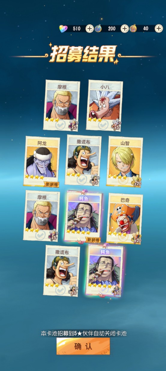 好,关于上面官方送出来的的奖励,平民玩家基本能获得基德、30抽中老沙的情况,至于氪金玩家则优先抽新世界索隆卡池为主。新世界山治次选。游戏7天活动送新世界路飞的。
