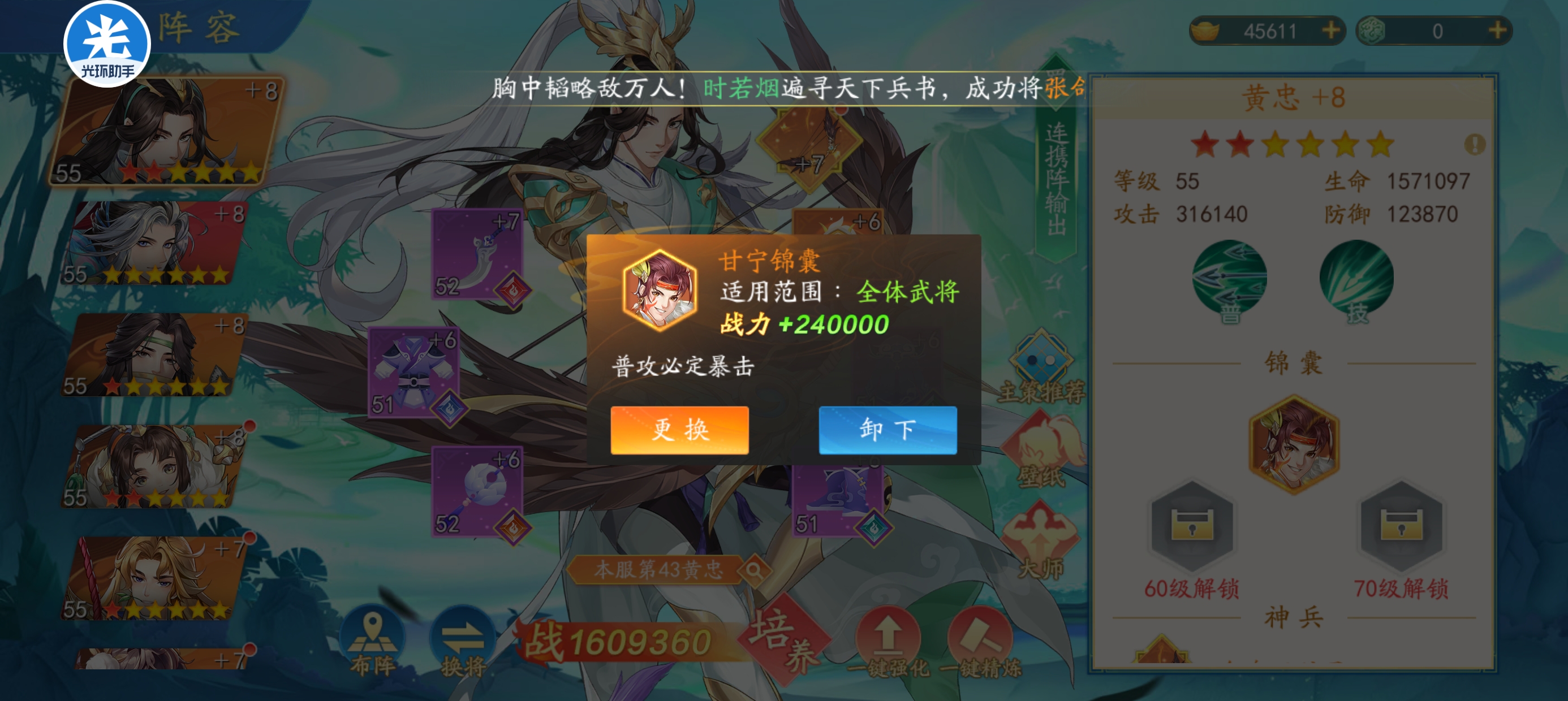 例如甘宁锦囊普攻必定暴击,前期也挺适合黄忠搭配。