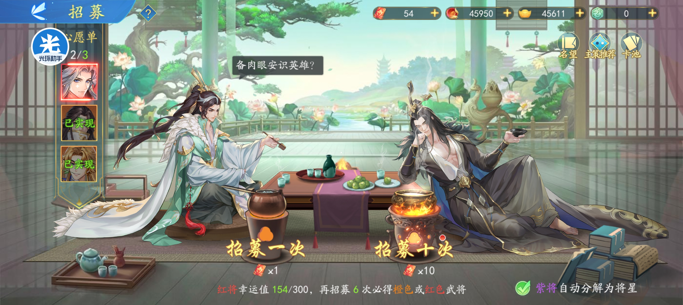目前暂时不用挂心愿卡的有黄忠和曹冲前期后续先拉一下其他辅助卡。徐庶和郭嘉(前期唯一核心红卡)