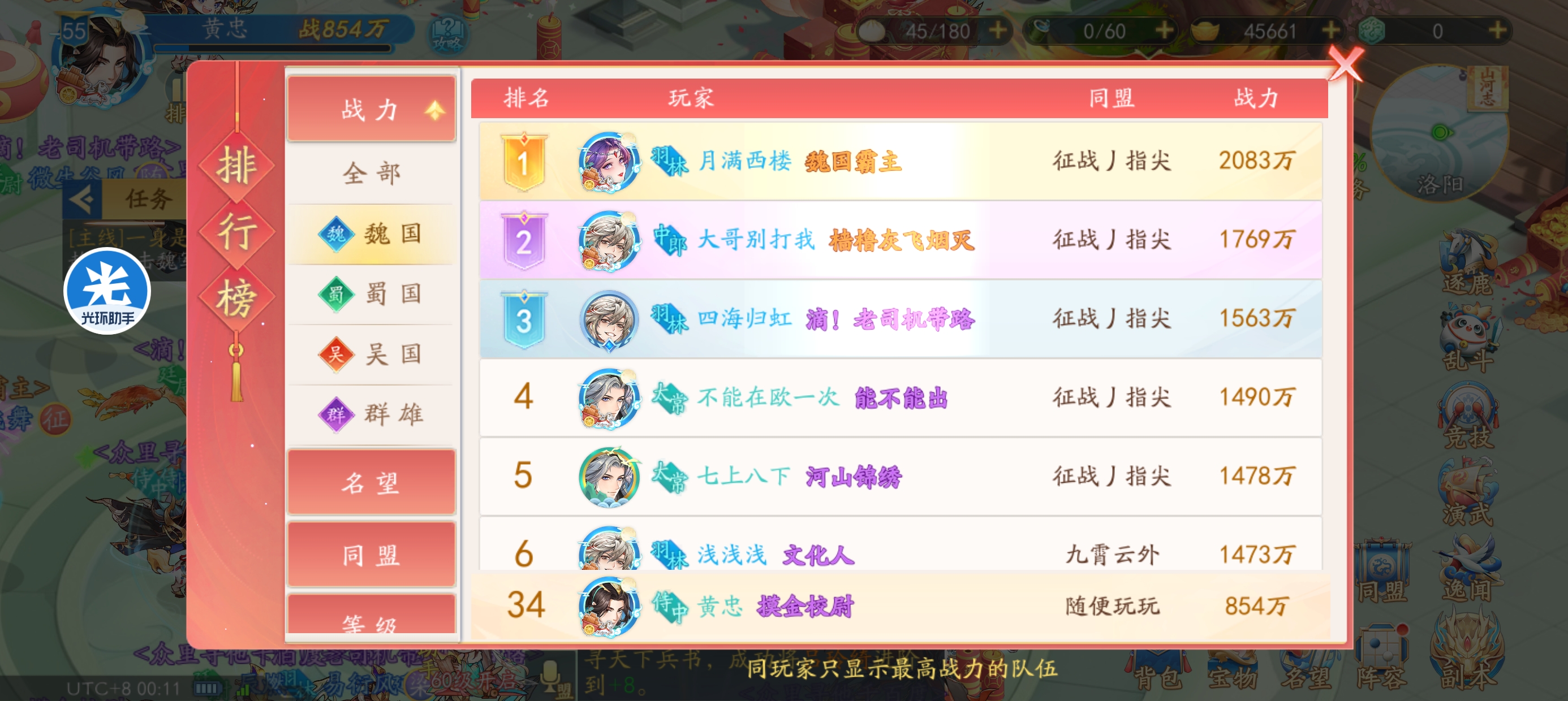 魏国总战力排名34名。